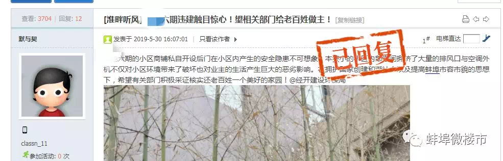 有网友在论坛投诉:蚌埠某小区违建情况严重,小区存在大量安全隐患,物业公司光收费不作为。