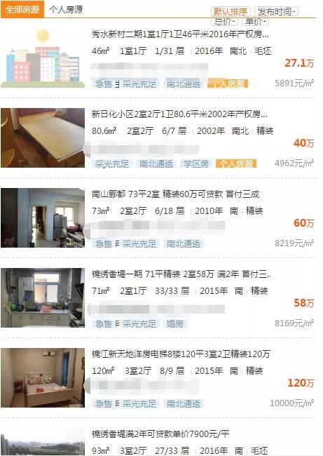 搜索结果较多,总结一下我们不难发现:同一地段、同一区域、甚至面积大小相同的情况下,二手房小区环境就成了一个重要的衡量指标。