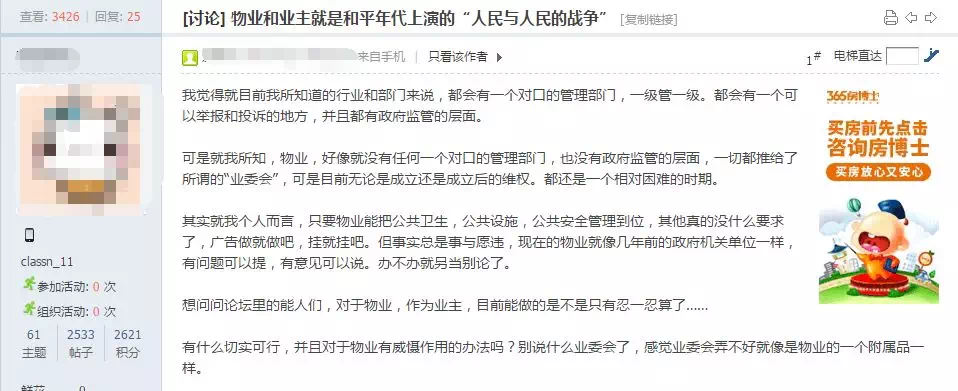 仅在论坛搜索“物业”关键词,就找到500+的相关贴文,我大致浏览一遍发现,几乎都是业主吐槽物业的糟心事。
