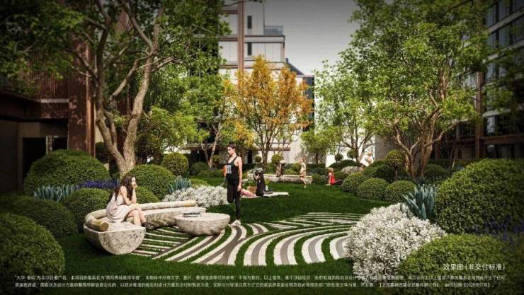 “一带两轴三庭”的沉浸式景观,演绎水岸惬意生活场。