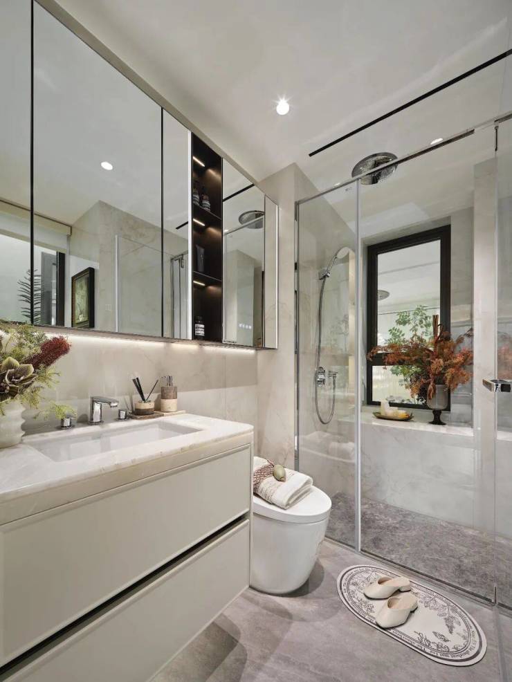 卫浴空间采用高仪五金、唯宝台盆等国际品牌;更搭载滨特尔末端RO反渗透直饮净水系统。