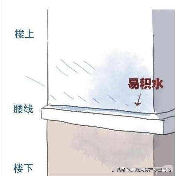 腰线房与其他楼层相比,更容易渗水,因为腰线房的外墙上方会突出一部分,所以下雨时,这个腰线就会接收更多的雨水,也就更容易出现渗水的情况,从而造成墙体发霉。如果防水没做好甚至可能会影响到楼下。