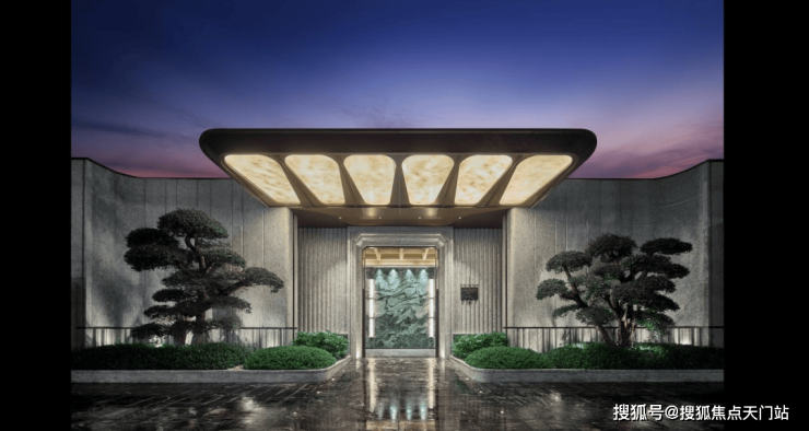 低密墅区为奢阔场景营造提供了先天优势。从大门开始,保利·外滩序的豪宅仪式感就扑面而来。据悉,在别墅组团单独设计了专属入户,给予业主“独一份”的尊崇感。入户两侧有两棵价值不菲的红花继木,春季变红,寓意“吉祥如意”。材质上也无不透露着贵气,立面是白玫瑰奢石,地面铺装的是慕尼黑大理石,顶部还特别运用了透光云石做了一个灯光设计,到了夜晚,灯光会穿透光云石洒向地面,很是惊艳。