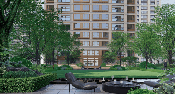 项目最大楼间距约100米,除了保证采光视野更出色,更能弛地铺陈轴线仪式和园林景观。