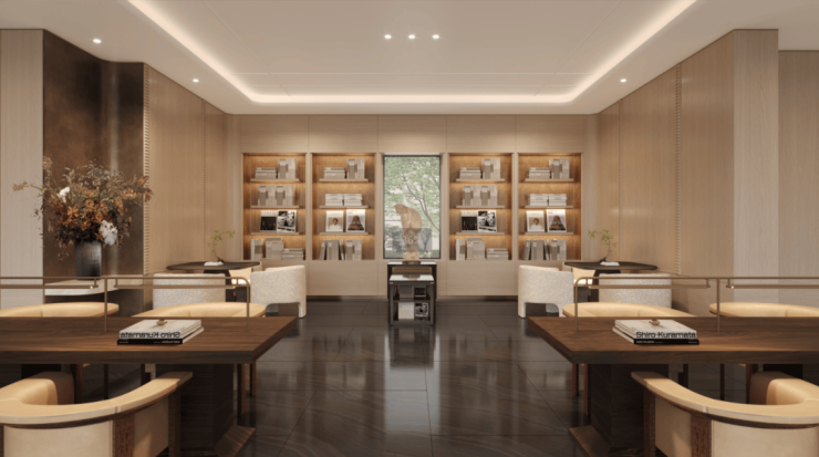 沿街入户门庭以圣罗兰奢石、白雪公主透光玉石、巴玉曼米黄大理石等高端材质组合,极具视觉冲击力。