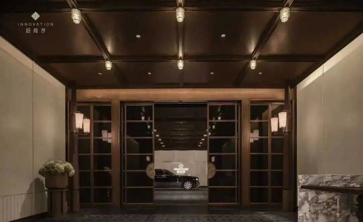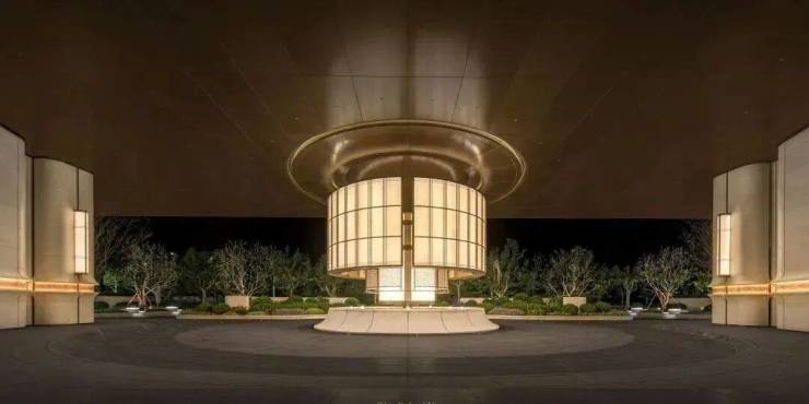 借鉴伦敦The Whiteley酒店,自然场景和室内设计手法结合,形成仪式感和人性化兼备的车行落客。
