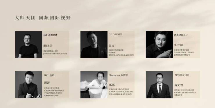 聚集享誉业界的团队——gad杰地设计、31.DESIGN、GVL怡境、德森建筑设计、NNS纳沃设计、Bluemoon布鲁盟