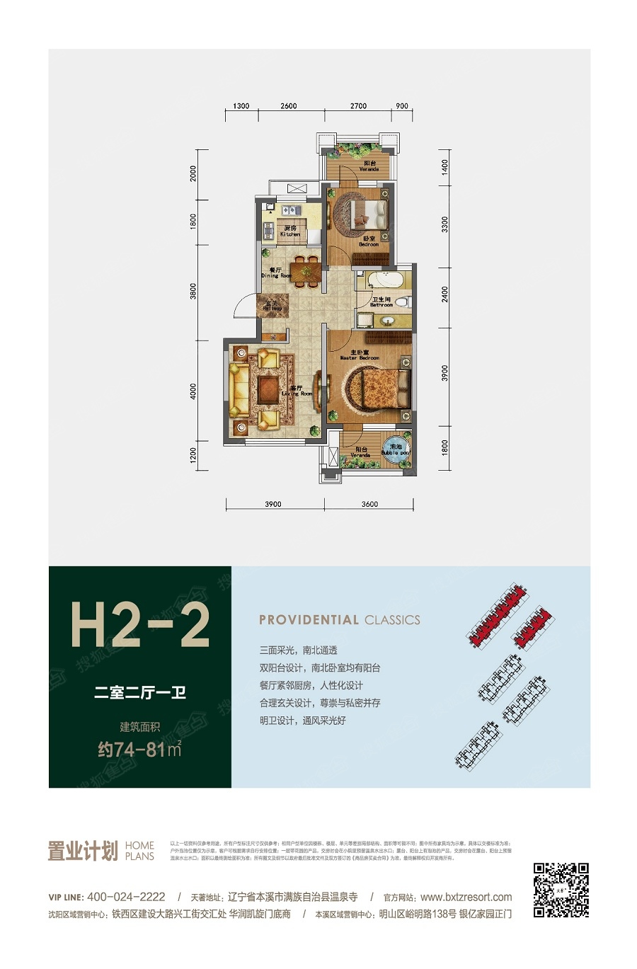 2室2厅1卫-山麓组团-平层洋房-H2-2