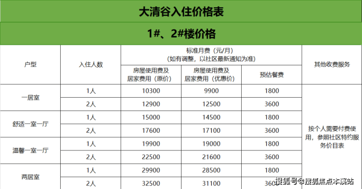 对于不同楼栋的不同户型,月费自然也是不同的,但是每个人的餐费基本是一致的。