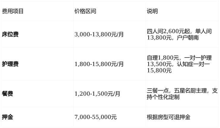昆仑邸采用"床位费+护理费+餐费"的清晰结构,拒绝隐形消费