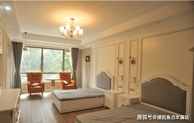 公寓内共有60间房间,设置了单人间和双人间两种房型,总计146张床位,充分满足不同长者的居住需求。房间面积宽敞,小单人间约35平方米,双人间及部分套间可达45平方米左右,且几乎所有房间都朝南,阳光可以毫无阻碍地洒入室内,让长者们时刻沐浴在温暖的阳光中,感受家的温暖与舒适。