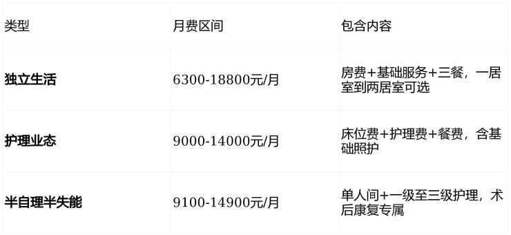 独立生活:6300-18800元/月,适合完全自理长者