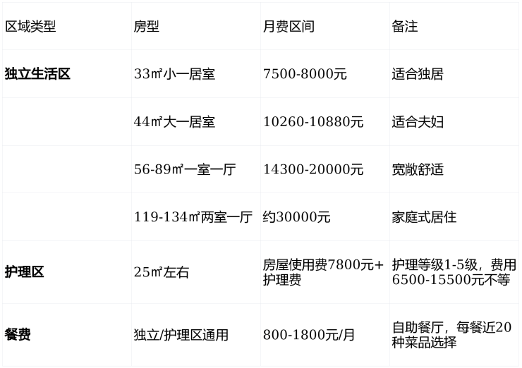 入住满3个月至2年,独立区扣1.5万、护理区扣2万