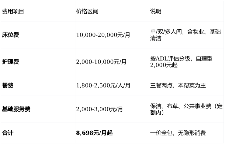 月均费用8,698元起(含床位费+基础服务费)