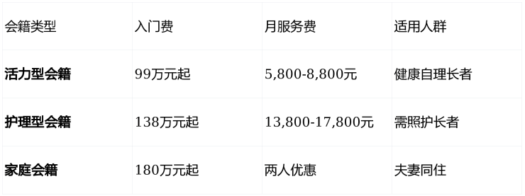 自理长者:约9,500-11,000元/月(含房费+餐饮+基础服务+健康监测+1500场活动)