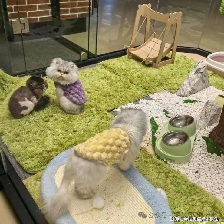 公共活动中心养了好几只可爱的猫咪,老人可以来这里逗猫玩,这在外面社区几乎看不到。