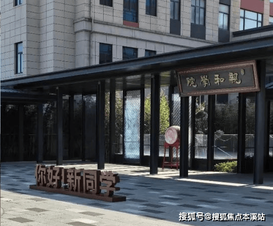 如果从宣梅路的正门进入,可以看到“你好!新同学”的欢迎标语,后面连廊有着“亲和学院”四个字。
