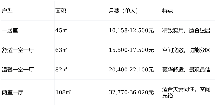 月费:一居室约10,158元起