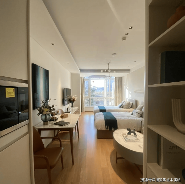 社区提供独立生活公寓、护理公寓等多种居住选择,满足不同健康状态长者的居住需求。公寓户型多样化,如一居室、一室一厅、两居室等,套内面积从34平米到105平米不等,均采用精装修交付标准,配备适老化设施,如防眩光灯光系统、圆角家具、加厚高硬度海绵沙发、空调、新风及地暖系统等,保障长者的居住安全与舒适。