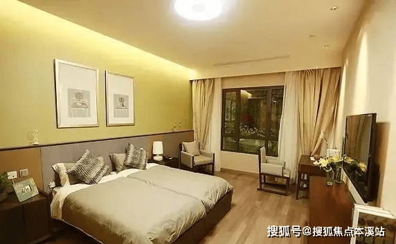 设计稳重、典雅。床可分可和。中央空调,冬季有地暖供热。