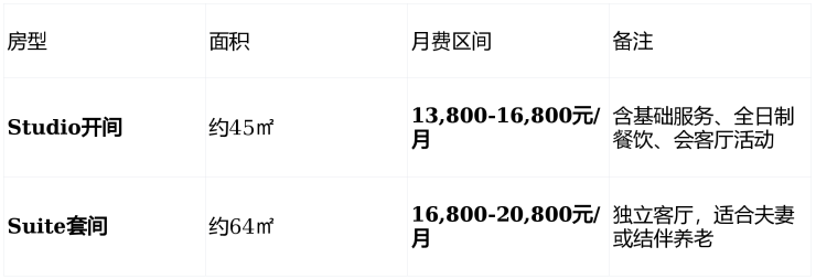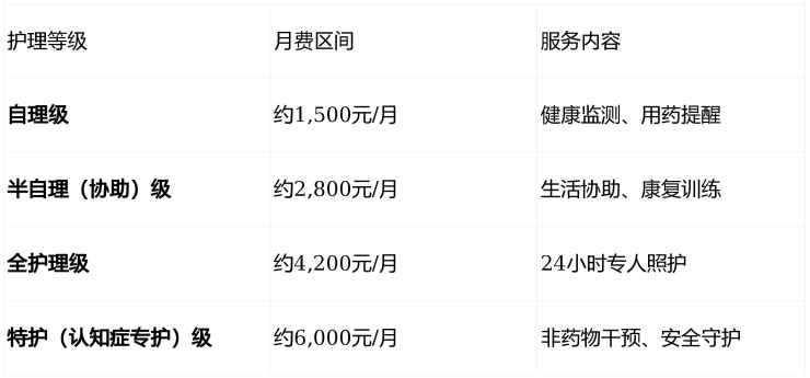 综合月费区间6,000-26,800元/月(根据房型、护理等级组合)