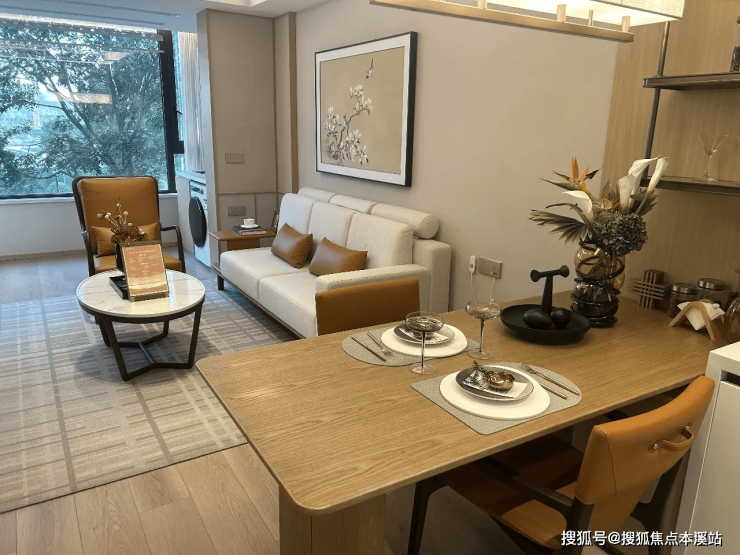 精装拎包入住,木饰面温润色调,宽大窗户引入园林景致