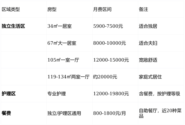 针对失能或术后康复长者,由注册护士和康复师团队提供24小时医疗监护和康复训练。护理等级1-5级,月费标准在12000-19800元之间(含餐费)