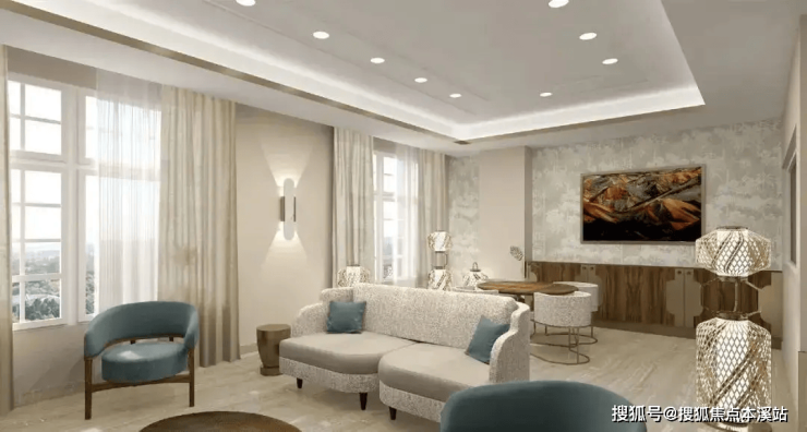 1500㎡空中花园:法式景观设计,喷泉、草坪、花境相映成趣