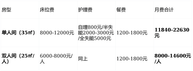自理型7250-12000元/月(一费全包:三餐+水电+基础服务)