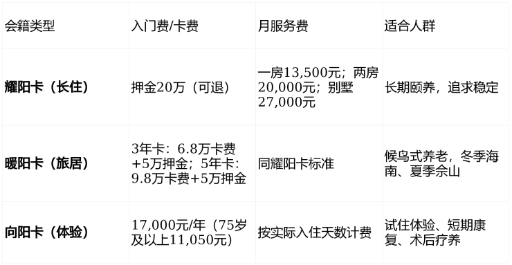 五、灵活入住:三种会籍卡的养老民主化