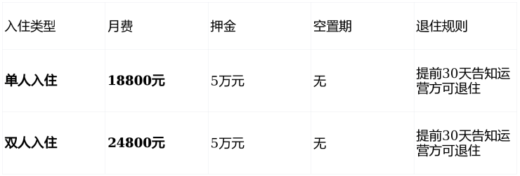透明承诺:无任何隐性消费,试住期间费用按日折算