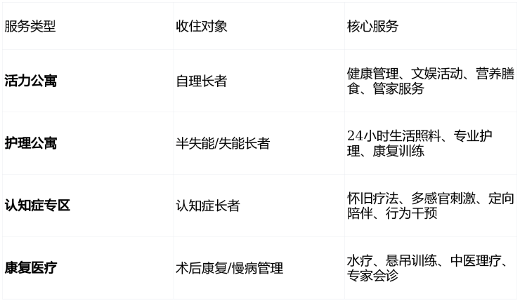 三、服务体系:CCRC全周期照护"永不搬离"