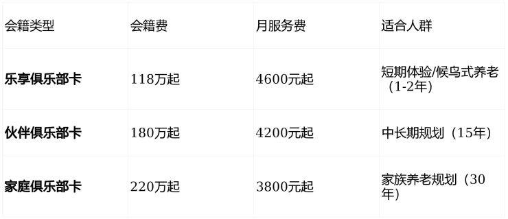 逸浦荟提供长、中、短期三种会籍模式,打破传统养老社区的高门槛