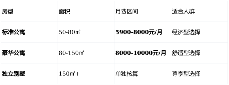 注:月费包含公寓租金、物业管理、基础健康监测、公共设施使用