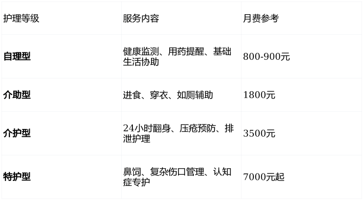 采用"床位费+护理费+餐费"三段式透明计价,无隐形消费