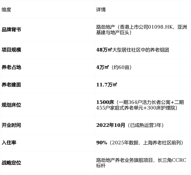 2022年10月,当第一缕晨光穿透松江小昆山的薄雾,路劲·隽芳华正式开园。这不是一家普通的养老社区,而是香港路劲地产(01098.HK)——这家曾以"亚洲基建巨头"闻名的港资上市房企——在华打造的首个CCRC持续照料养老社区。