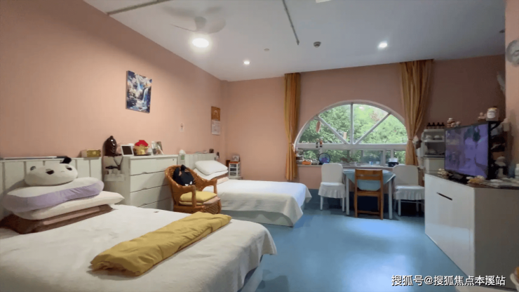居住空间:房间内配备智能护理床、独立卫浴、中央空调、电视、紧急呼叫系统等一应俱全。