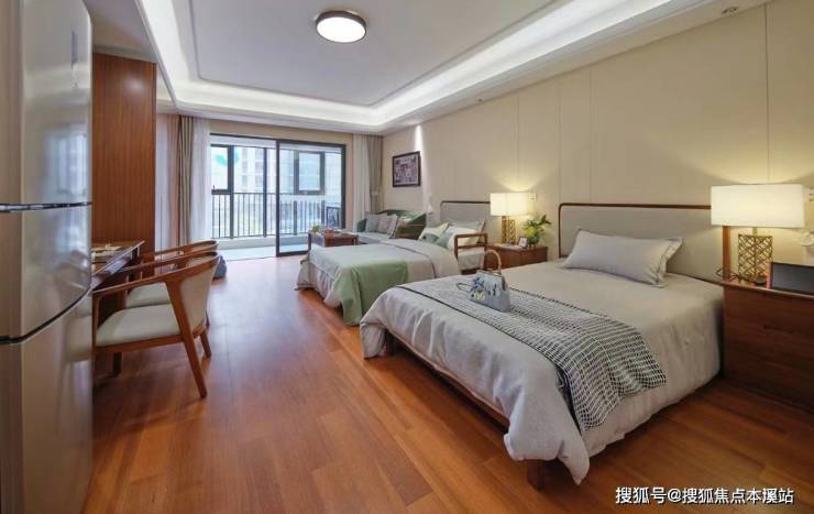 养老院的适老化设计贯穿始终,房间内配备独立卫浴、智能护理床与全景落地窗。公共区域实现WIFI全覆盖,无障碍通行设计,连公共区域的扶手都采用抗菌材质。