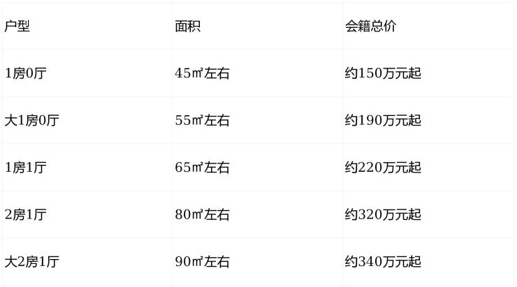 会籍总价(根据户型,可继承、可转让)