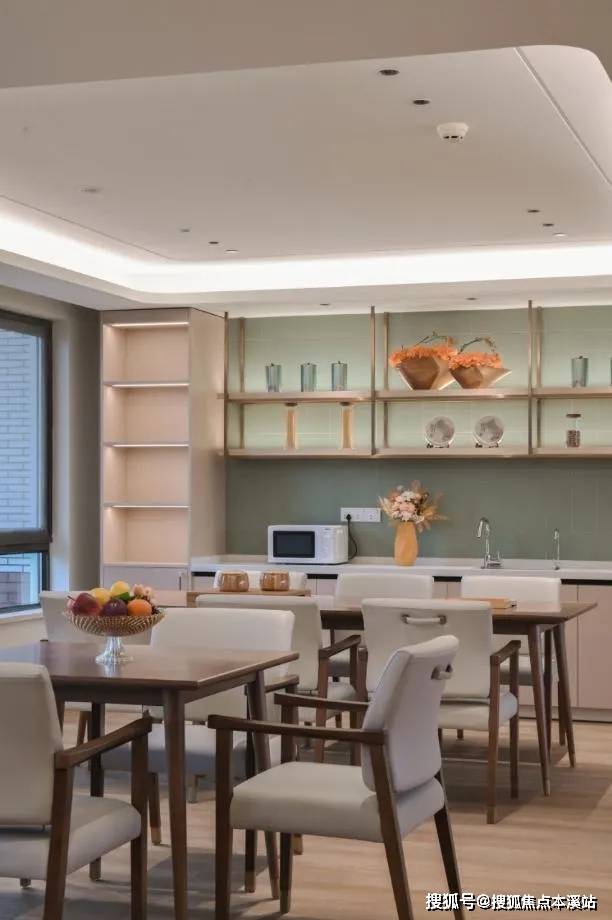 锦绣府占地约1.3万平方米,绿化覆盖率达到35%,整体设计由日本设计集团精心打造。社区内建筑错落有致,分为A、B、C三栋楼。A栋为活力区,有58套一室一厅的独立房型,阳光透过超大的落地窗洒入房间,明亮而温暖;B栋为护理区,升级后拥有120套护理房型,每一处细节都体现着适老化设计;C栋为功能区,连接着A栋和B栋,设有医务室、康复厅、多功能厅等,满足长者们的各种生活需求。