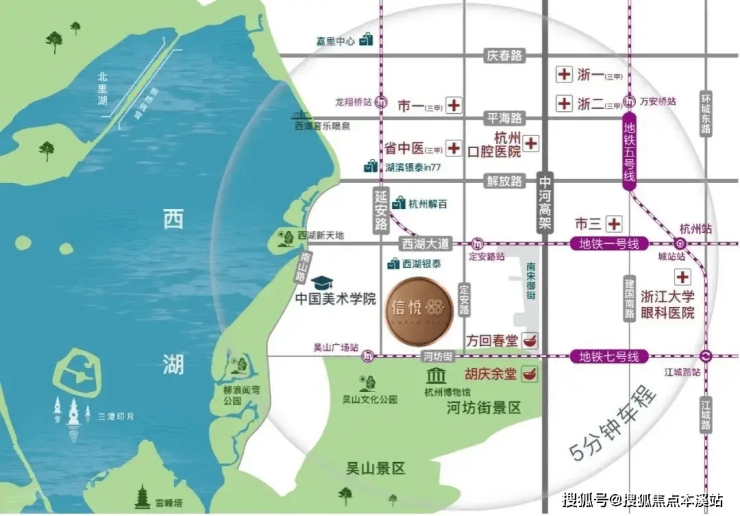 3公里内汇聚浙大一院、浙大二院、省中医院、市一医院等近十家三甲医院