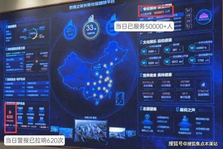 在我们参观的过程当中,园区讲解告诉我们,智慧平台系统会显示每日拉响警报的次数(当天居然已经拉响了620次)。一旦警报被拉响,管家和安保五分钟之内就会赶到他们身边进行帮忙和救助。