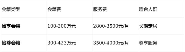 注:月费包含公寓租金、物业管理、基础健康监测、公共设施使用