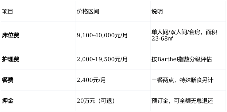 透明收费:10000元/月起,长护险试点,押金可退,无隐形消费
