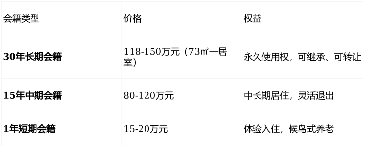 收费灵活透明:会籍118万起,月费8600元起,可继承可转让
