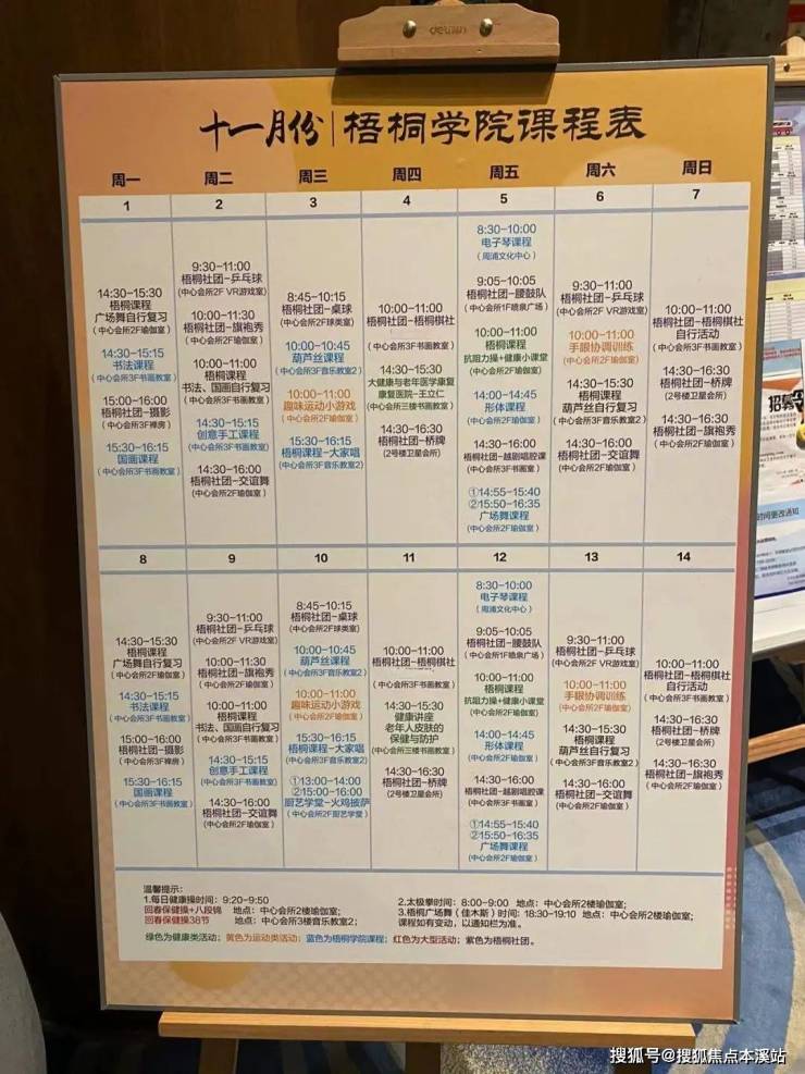 在参观中心会所的时候,我看到有一张显示11月份梧桐学院课程表,从1号到14日,这半个月内无一天是空闲下来的