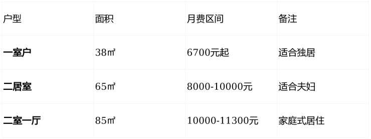 38㎡一室户:月费6700元起,适合独居