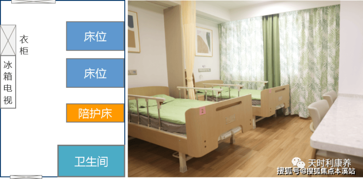 室外有绿化园区、亭台长廊和健身场地。室内环境幽雅温馨。居室内组合全家具,独立卫生间,生活设施一应俱全。同时设有二人间、三人间及多人间(全护理医疗房)。