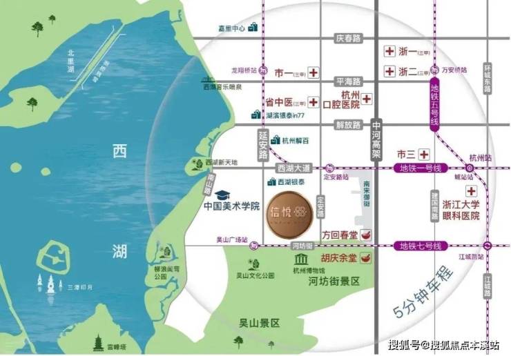 杭州中信信悦88养老公寓是中信集团斥资8.5亿元打造的融养老、医疗、商业于一体的都市综合养老示范项目,由杭州中信养老服务有限公司负责具体建设运营。项目位于杭州市上城区延安路88号,地处杭州地理中心原点,西距柳浪闻莺仅500米,南接吴山、河坊街景区,周边散布着丰富的自然、历史和人文景观。这里交通便利,毗邻西湖银泰城,2条地铁线穿越,9条公交线直达,周边3公里范围内分布着十多家顶级医疗机构。
