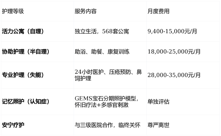 费用包含:房租、基础服务、文娱活动、健康管理、园林维护